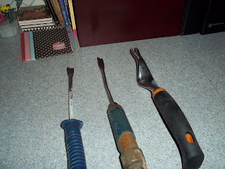 It seems many of the tools are focusing on the handle for comfort. I am all for that! I am also all for progress when it comes to finding a better weeder tool. Here, I will show you my first weeder I have had for 10+ years and the other one for approximately 10 years. Then, I will show you the weeder I just purchased from Fiskars. I lined them up for you to see.