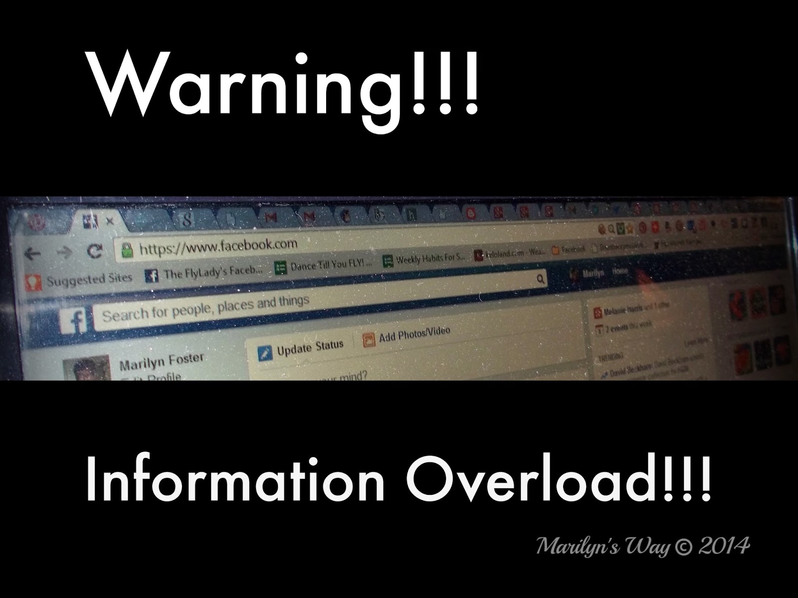(NOTE: All of this was done in real time. Nothing was staged. When I set out on this journey I was searching for something I could do my way. That is how I best learn with keeping consistency in the front of my mind. I found Flylady in 2005 and have learned so much. What I learned was the importance of habits. From there I created Dance Till You FLY! mw featuring nine habits each day every day. It is a simple plan that also has weekly habits and monthly events. I am sharing it with you all and to not give up. Practicing the nines will get you far. Dance Till You FLY! mw was also created for me living with fibromyalgia and being ADD. It wasn’t until I found Flylady and took her March Habit of Getting Dressed to Shoes and posting a photo with a mini blog daily for 436 consecutive days did I learn the importance of habit. If you want to see the video that Flylady made of me getting dressed to shoes for one year to her song, click on Flybaby Marilyn and that will take you there. While you are there check out Flylady’s videos. She has great ones. Please! Someone rescue me from those social media buttons! I am sure it is simple but this ole brain is suffering from information overload! I guess I will have a piece of chocolate for desert.)
