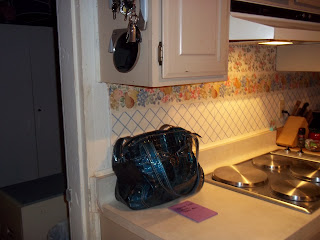 The only thing that is supposed to be there is my purse and I didn’t even set it down the correct way or zip it up. I am going to give myself a 15 minute declutter session to restore my Launch Pad the way it was intended and that is my purse on the counter and my keys on the hook on the cabinet. While I am at it I am going to do a quick purse boogie double checking I have everything that I need for tomorrow. I will lay down my list of last minute items to place in my purse in the morning like a couple cheese sticks and a bottle or two of water. Tonight I will set out my travel coffee mug to take. I doubt I will have to write a note to take Lily! She won’t let me forget!