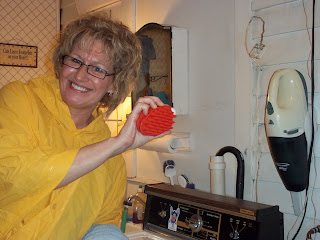 Usually when Lily sees that I have a coat of some type on, she is ready.  She thinks we are going for a ride.  But wait, she thinks, “That isn’t a coat.  That’s the cape she wears when she give me a bath!!!!”  She is hesitant at coming in.  I wonder what goes on in her mind.  Finally she must think, “Ok, let’s get this over with.”