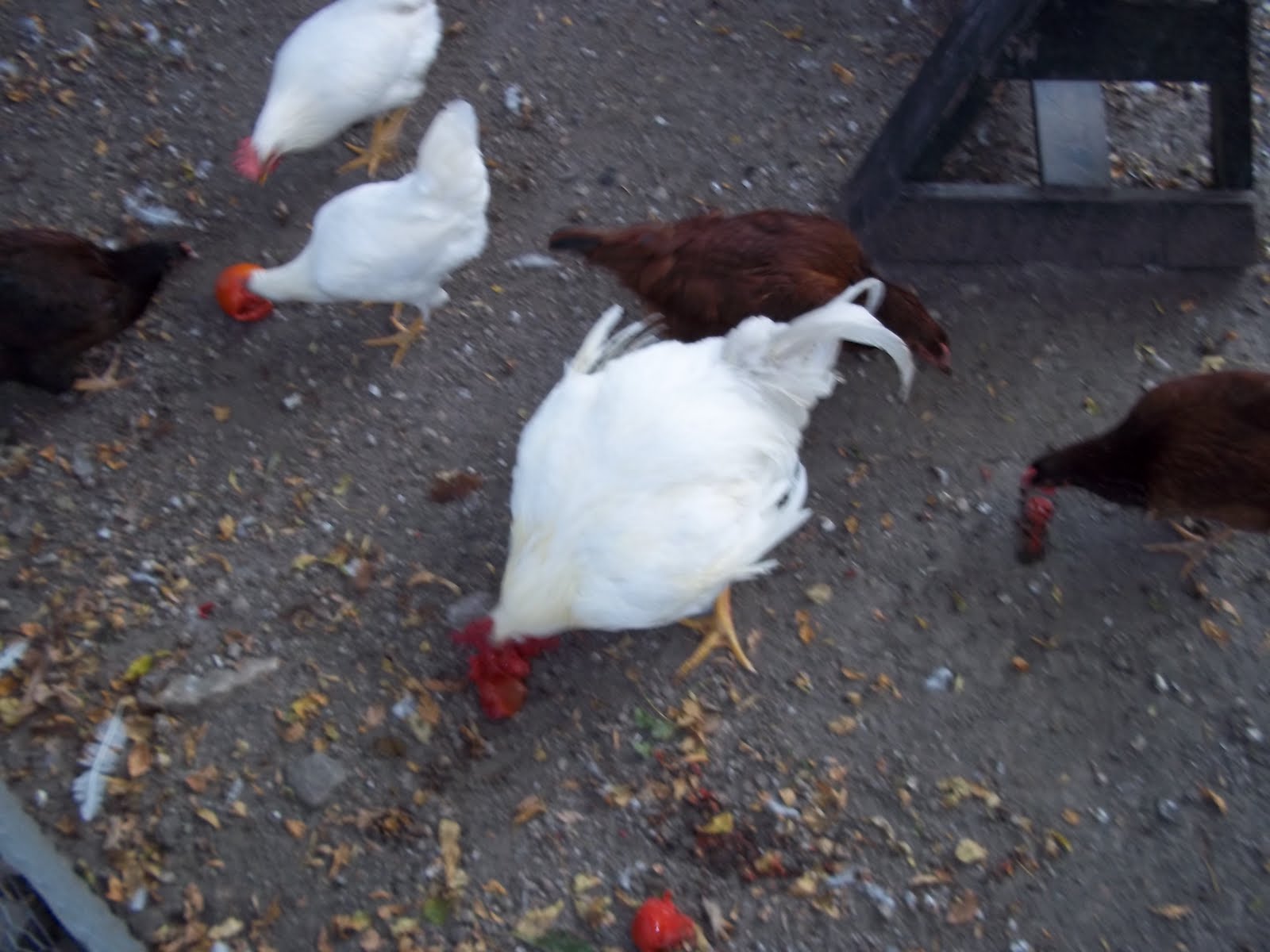 | Looks like they are happy. They got some tomatoes. At least I got to choose which ones! Ha! |