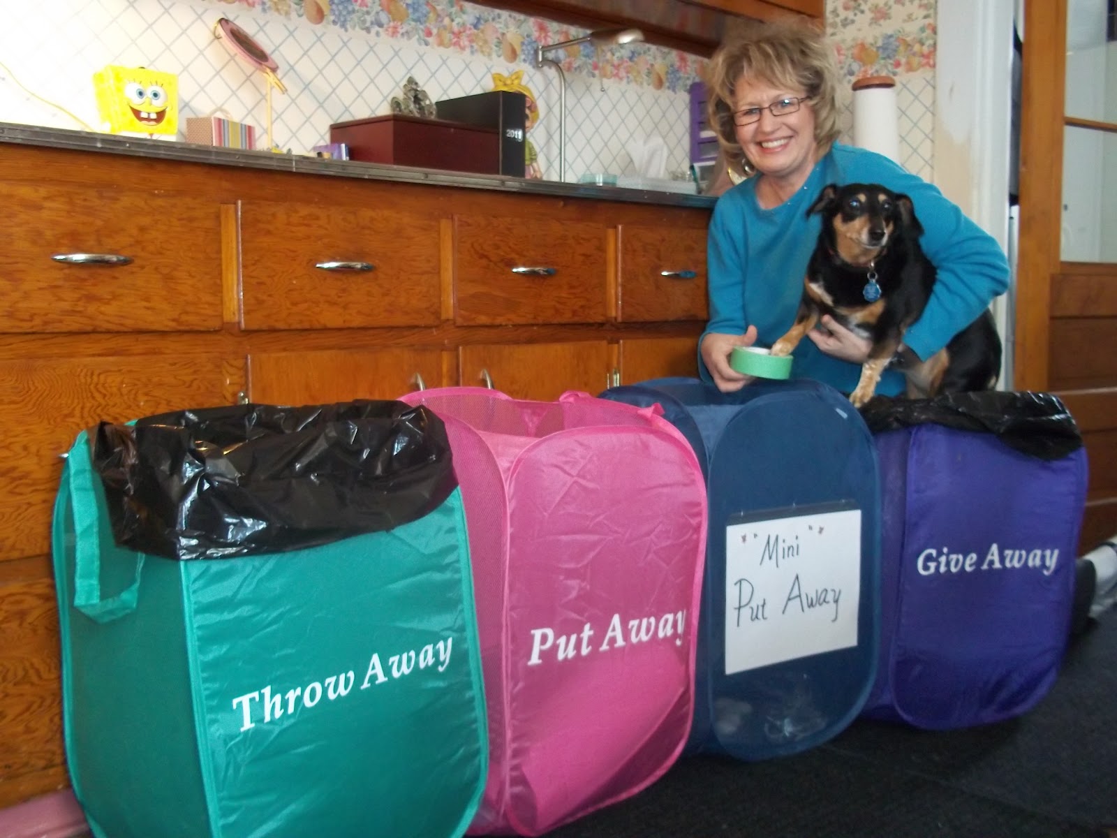 First, you go through your house with an empty trash bag and fling 25 items to “Throw Away.”  By choosing this step “first” it gets you up and moving about.  There usually is less emotional attachment to these.  Take out to the trash immediately.  Done!